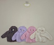 シャカシャカ素材で首もとフリルが可愛い、よごれにくい素材になっています。